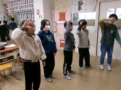 休み時間には体育のダンスをチームで練習している様子が見られます。発表会に向けて、それぞれ助け合っています。
