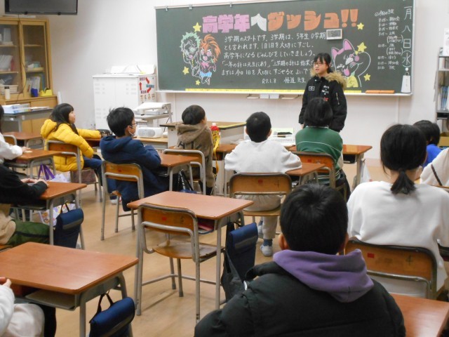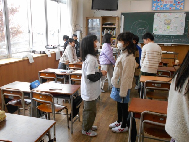 1月8日(水) 始業式 公開日 2025/01/08 更新日 2025/01/08 大久保っ子ニュース 今日から3学期です。雪の降る中、元気に登校してきたことをとてもうれしく思います。静かだった校内も、一気ににぎやかになりました。体育館での始業式のあと、各教室では、クイズやビンゴで冬休みの思い出を話したり3学期の目当てを立てたりして過ごしました。有意義な冬休みだったことが伝わってきました。明日は、書き初め大会です。忘れ物のないように登校しましょう。明日も待っています! +4