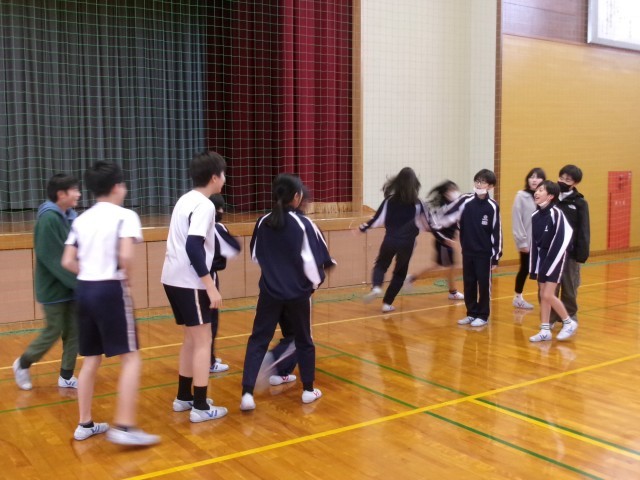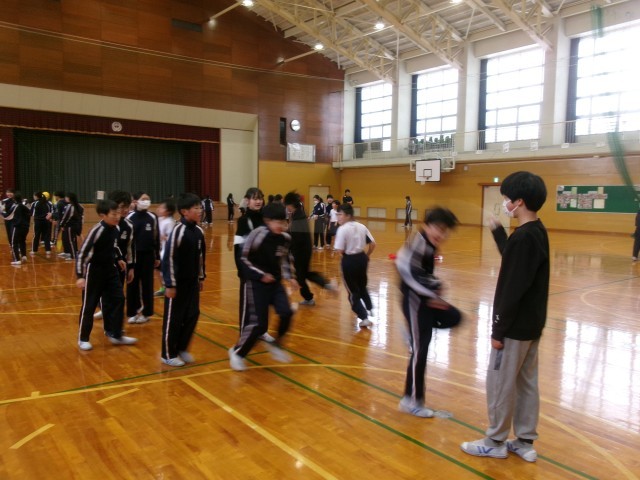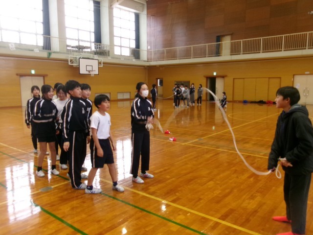 3学期最初の体育は、なわとびや大縄に取り組みました。団ごとに練習を行い、回数の計測を行いました。真剣勝負に体もポカポカになりました。