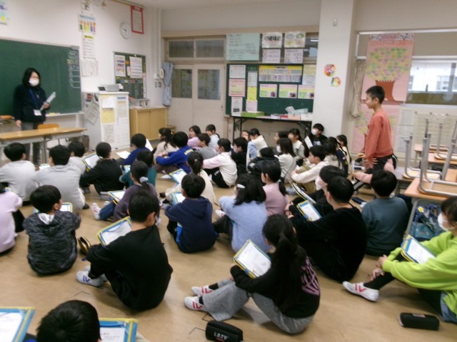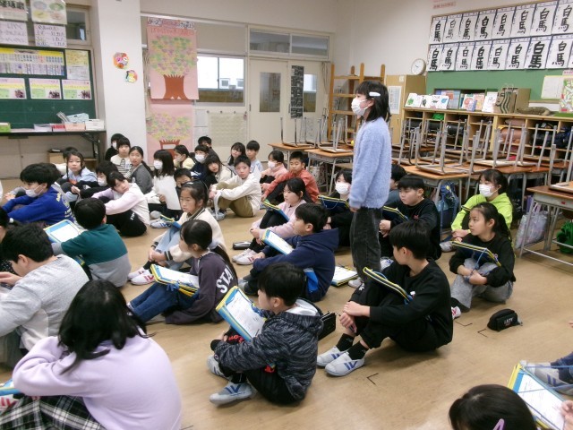 来週に控えたスケート教室に向けて、3・4年生でしおりの読み合わせをしました。