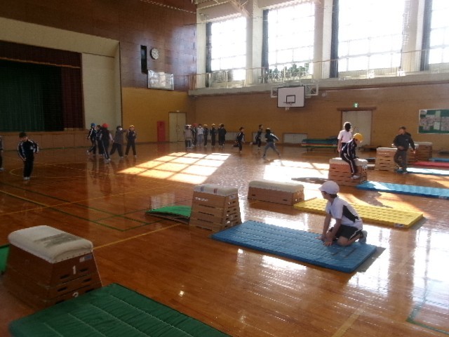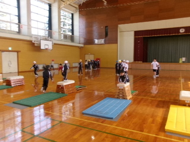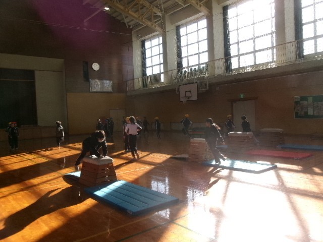 体育では、跳び箱に取り組んでいます。開脚跳びや閉脚跳びに挑戦し、上手に跳べるように練習中です。