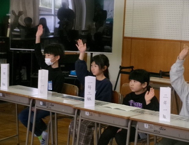 1月22日(水) 1年生 代表委員会 公開日 2025/01/22 更新日 2025/01/22 1年生 本日は、5年生が中心となって「卒業生を祝う週間のめあて」を話し合う代表委員会があり、1年生も代表の子供が参加しました。各学級で話し合ったことを基に意見を出したり、挙手して意見表明をしたりしていました。 1年生