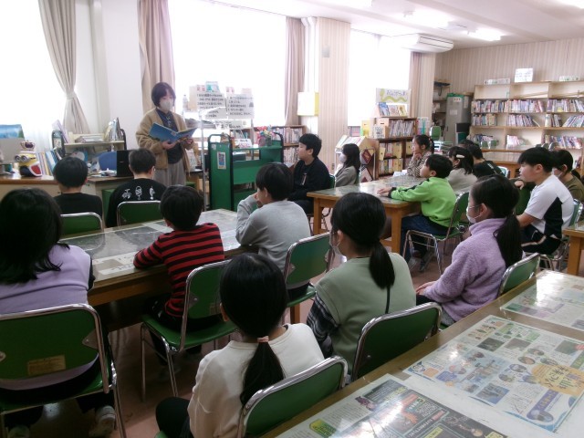 冬休みが明け、子供たちが待ちに待った3学期図書の貸し出しの日でした。いつも楽しみにしている司書の先生からの読み聞かせもしていただき、子供たちは真剣に聴き入っていました。