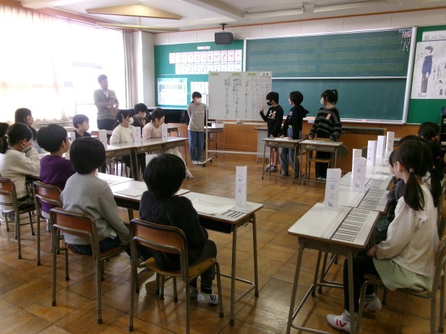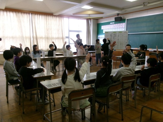 各学級の代表が集まって卒業を祝う週間のめあてを決める代表委員会が行われました。4年生からも各学級から代表者が参加し、積極的に意見を発表したり賛成の意を示したりしていました。