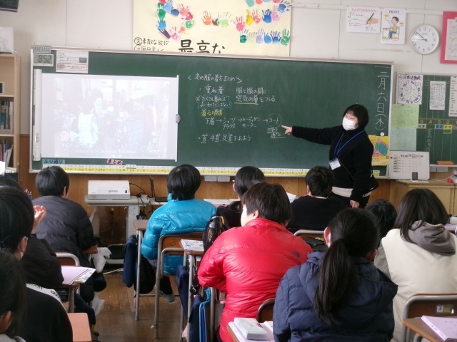 家庭科では、冬の過ごし方について振り返り、衣服の着方について考えました。