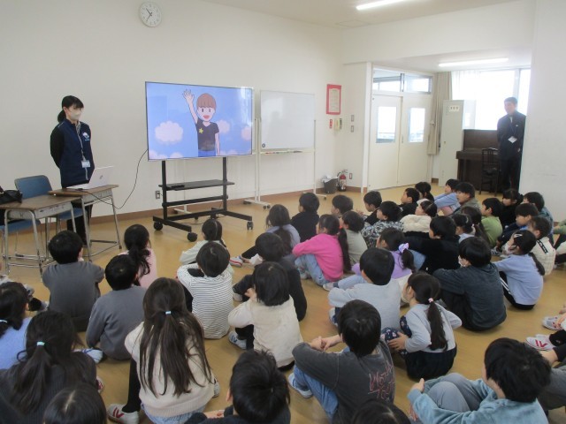 本日は、富山県警察の方にお越し頂き、「くもくん教室」を実施しました。動画やクイズで、子どもたちは楽しみながら「プライベートゾーン」について学びました。