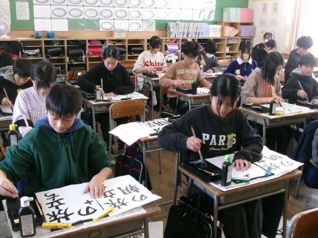 6年生最後の書写の授業を行いました。”最後の”とつく機会が多くなり、卒業に向けて気持ちが高まっています。明日からは、小学校最後の学習のたしかめが始まります。気合いを入れてがんばりましょう!