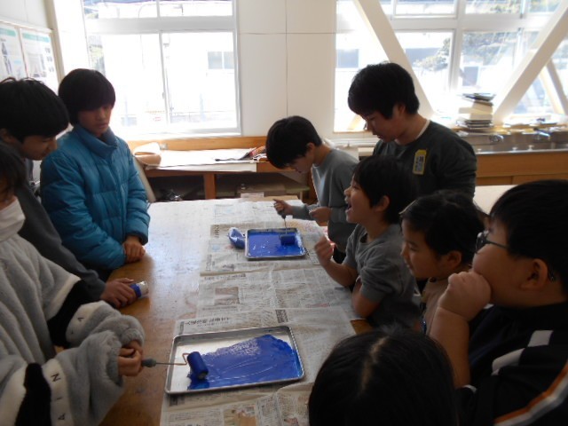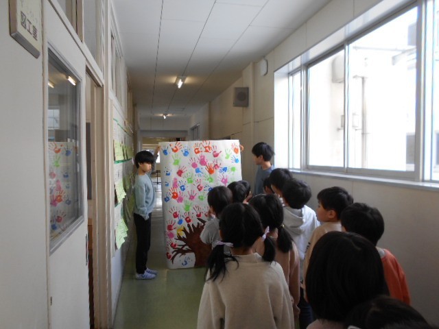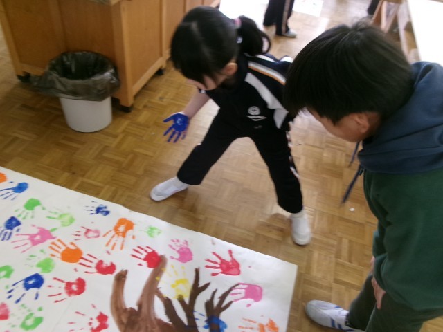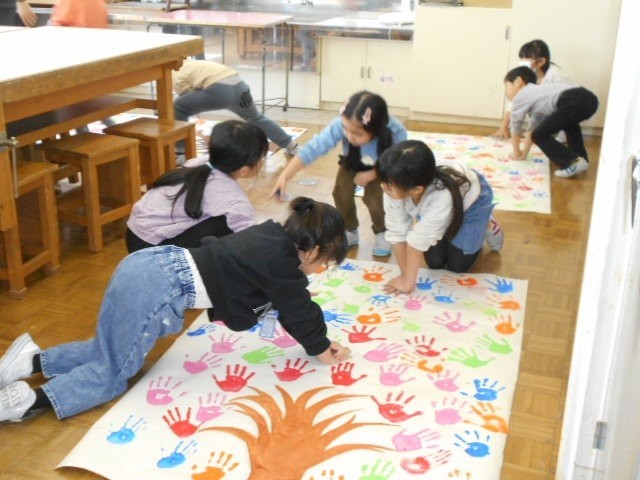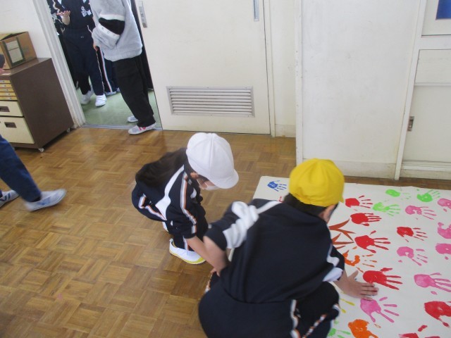 6年生さんにやり方を聞き、一人1つ手形を押すことができました。