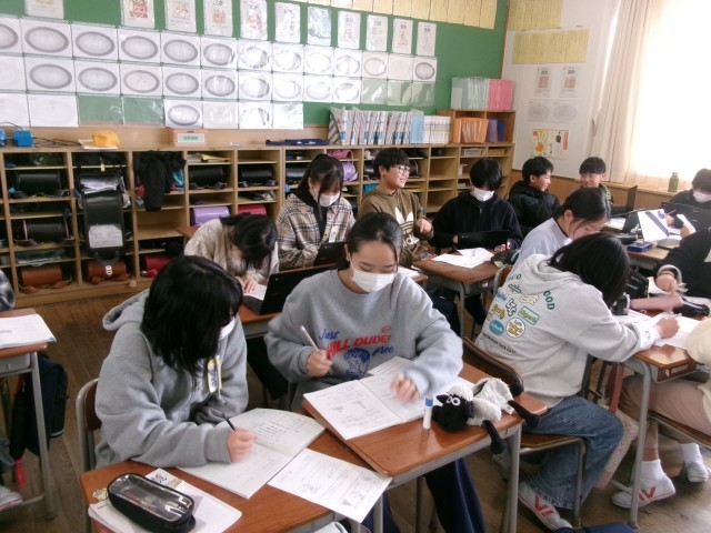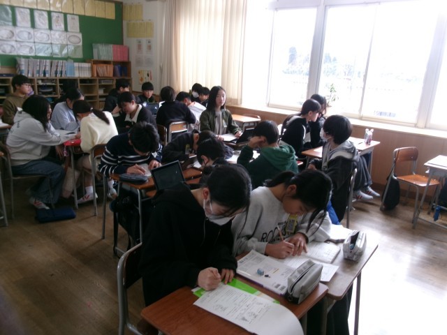 算数の時間の様子です。子供たち同士が教え会いながら学習に取り組んでいます。学習のたしかめも折り返しです。もう一息がんばりましょう。