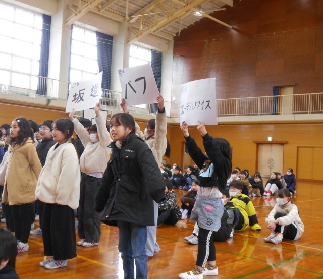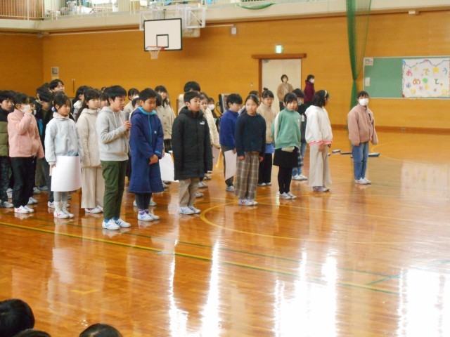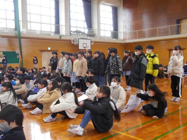 今日は卒業を祝う会がありました。3年生では、クイズとエールを準備し、6年生さんに感謝やお祝いの気持ちを伝えました。