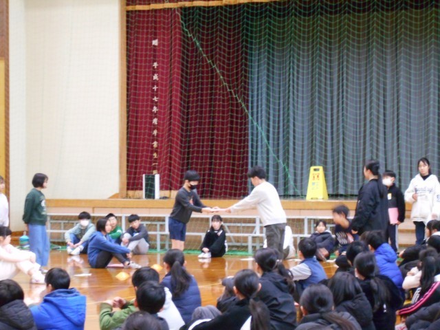 5年生の引継式の様子です。6年生から委員会活動を引き継ぎ、代表児童が6年生や来年の委員会活動についての思いを述べました。