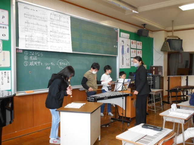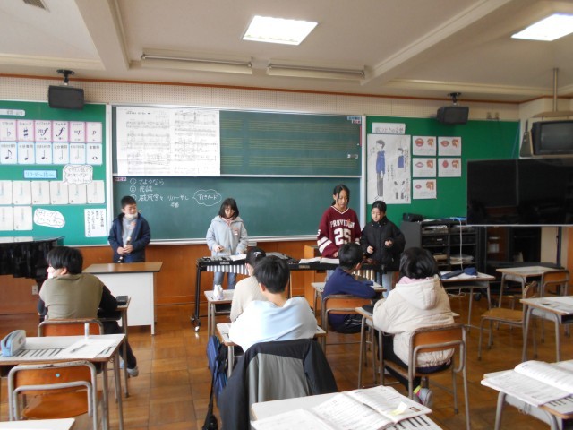 5年生の音楽科の学習の様子です。合唱や合奏をしました。