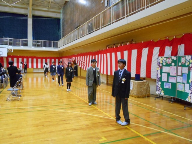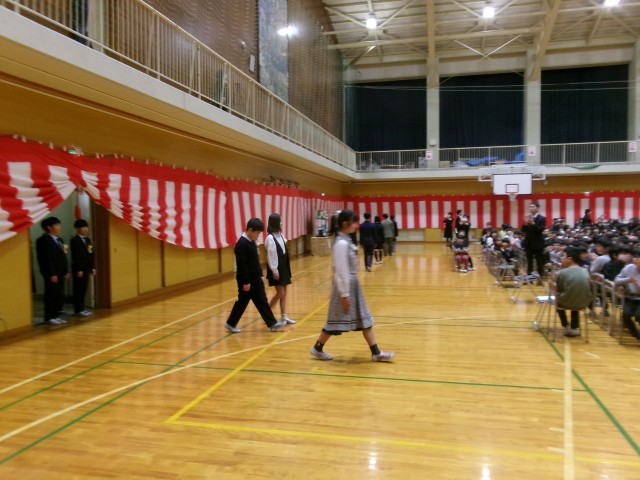 温かな日差しのもと、卒業式が執り行われました。子供たちは堂々と体育館に入場し、式に臨みました。