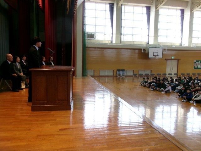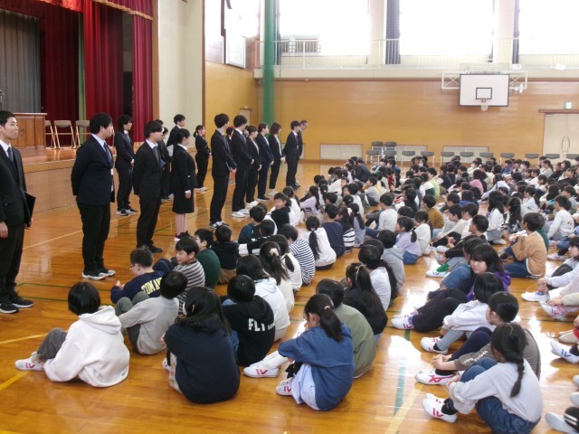 着任式で、新しく来られた先生や職員の方々が紹介されました。