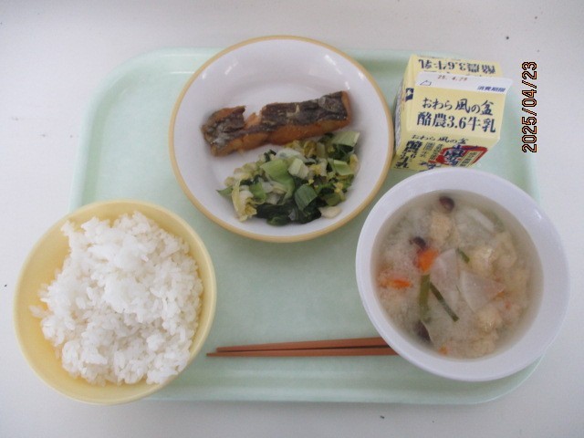 今日の献立は、ご飯 ホキのレモン味 みそ汁 おひたし 牛乳 でした。