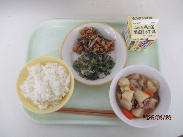 今日の献立は、 ご飯 南蛮煮 よごし 小魚入りフライビーンズ 牛乳 でした。」