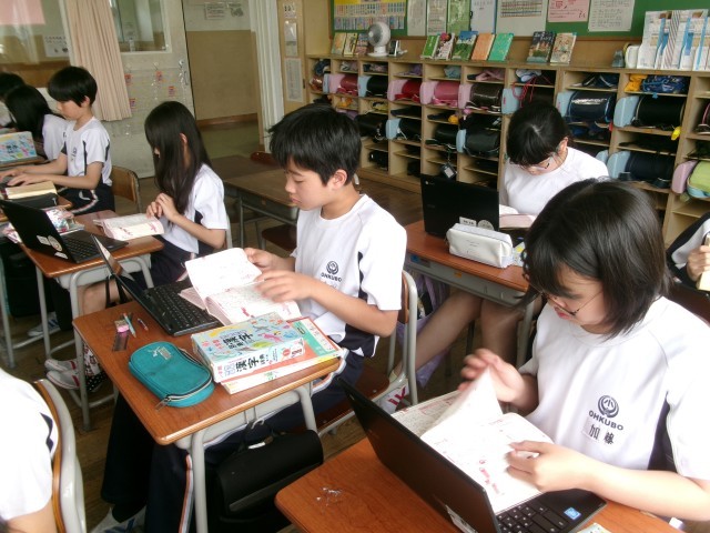 5月9日(金) 6年生 最近の様子4 公開日 2025/05/09 更新日 2025/05/09 6年生 国語では、「漢字の形と音・意味」の学習をしています。同じ部分をもつ漢字を仲間分けした後、その部分の意味について漢字辞典を使って調べました。