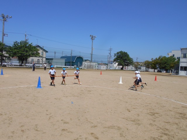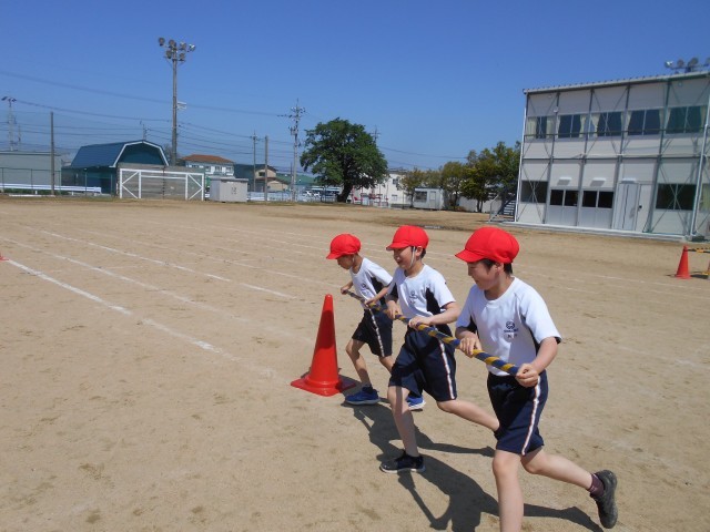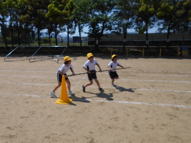 体育では、大久保ハリケーンの練習をしています。4年生として、3年生に手本となる姿を見せながら、一生懸命練習しています。