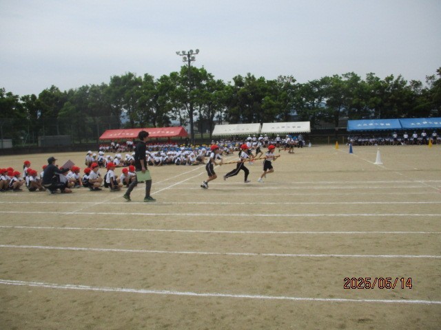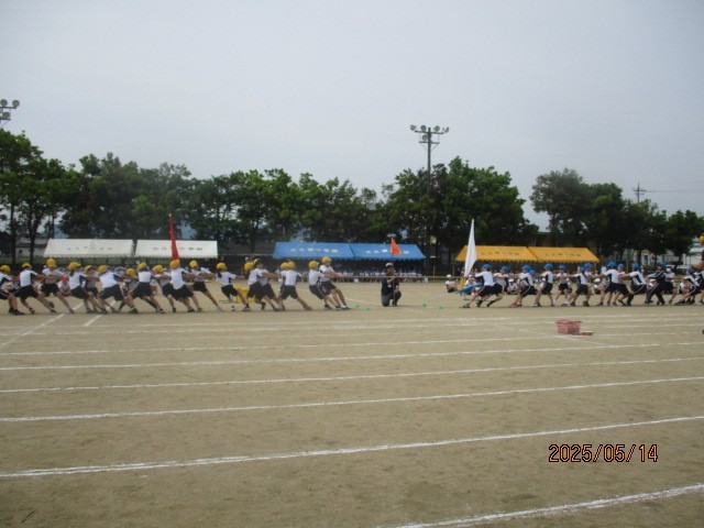 運動会の予行練習を行いました。初めて全員が参加する開閉会式を始め、全体をつなげての練習です。様々な係を担当する6年生にとっても大切な時間となりました。高学年の綱引きでは、予選も行われました。本番へのカウントダウンが始まっています。
