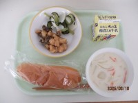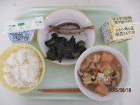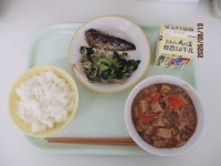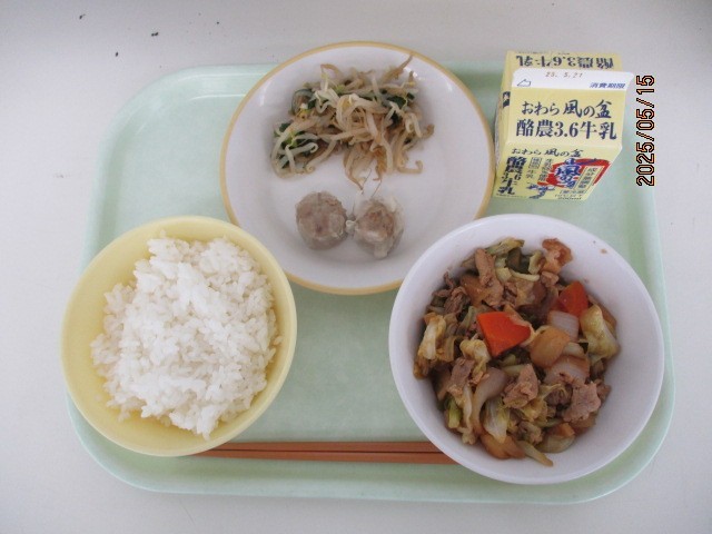 今日の献立は、 ご飯 回鍋肉 肉シューマイ 香味和え 牛乳 でした。
