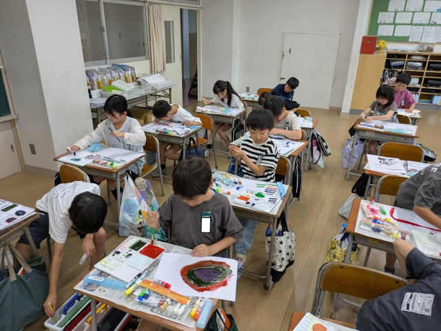 絵の具や水を混ぜたり、筆の使い方を工夫して、作品づくりをしました。