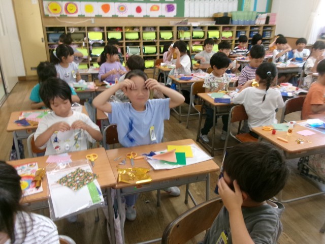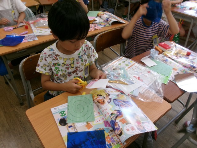 折り紙をはさみで切って、素敵な飾りを作りました。