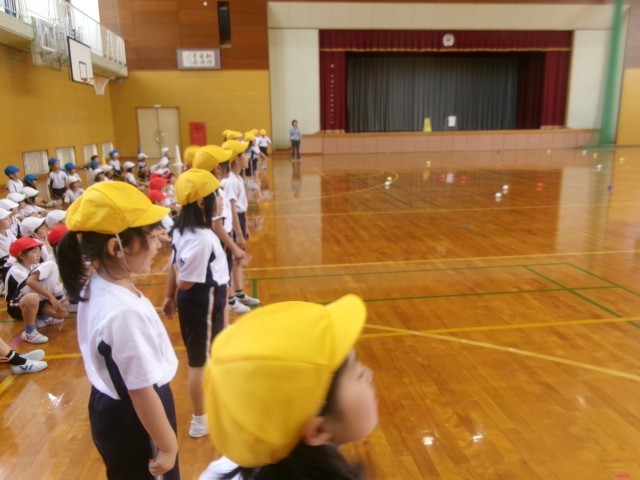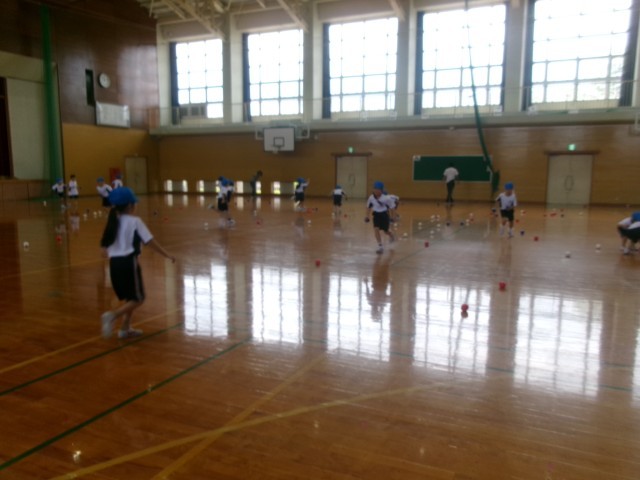 ボール投げの練習をしました。