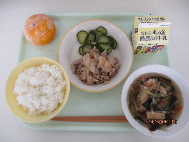 今日の献立は、 ご飯 豚肉のジャンロー 沢煮椀 きゅうりもみ 冷凍みかん 牛乳 でした。