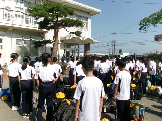 19日から20日まで、1泊2日の宿泊学習に行ってきました。写真は、出発式の様子です。一人一人がめあてを持ち、仲間とともに協力して安全に宿泊学習を行う意識を高めました。