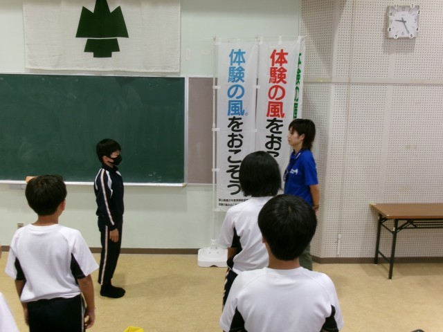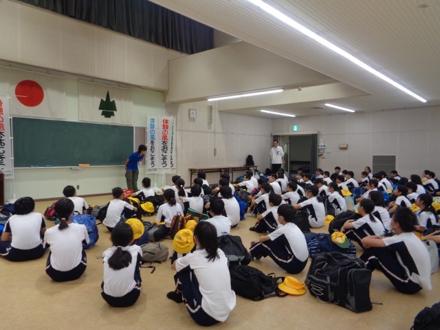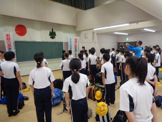 国立立山青少年自然の家に到着し、入所式を行いました。お世話になる施設の方々に感謝の気持ちを込めて参加しています。