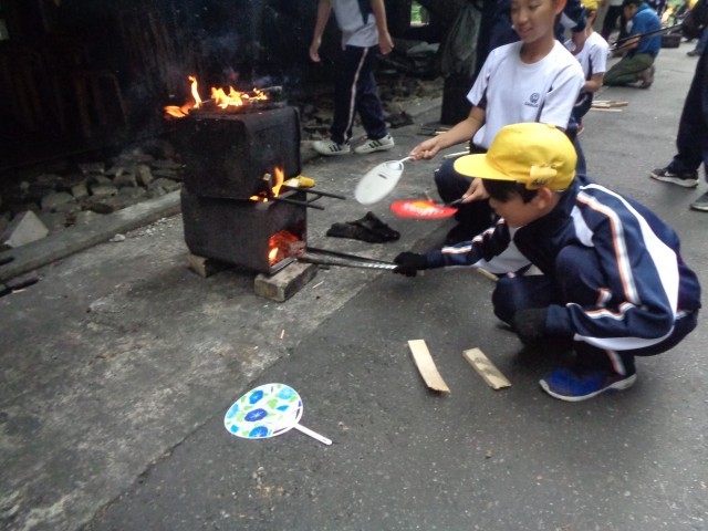 かまど担当の子供たちの様子です。暑さに負けず、がんばって火をおこしていました。調理場の人たちと協力しながら、ピザの出来具合に合わせて火加減を調節してくれました。