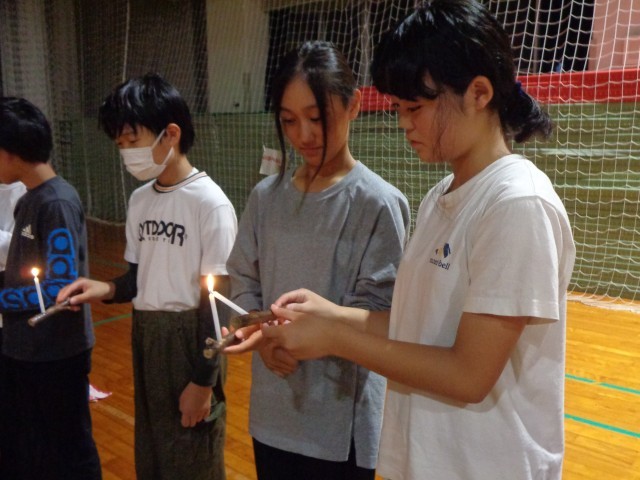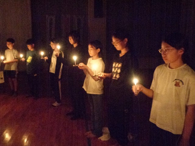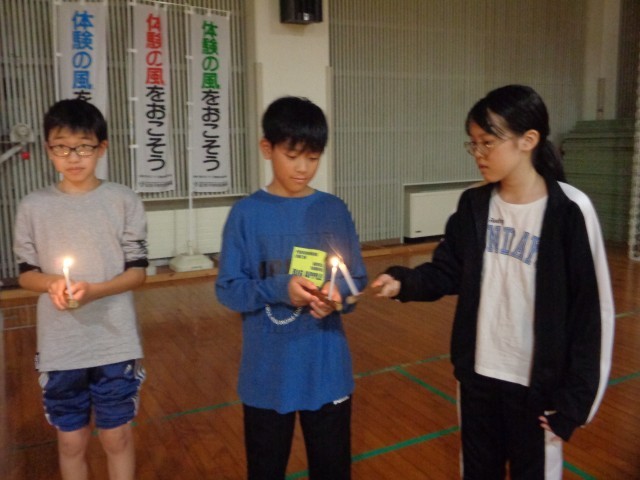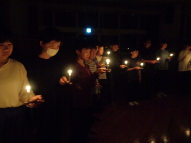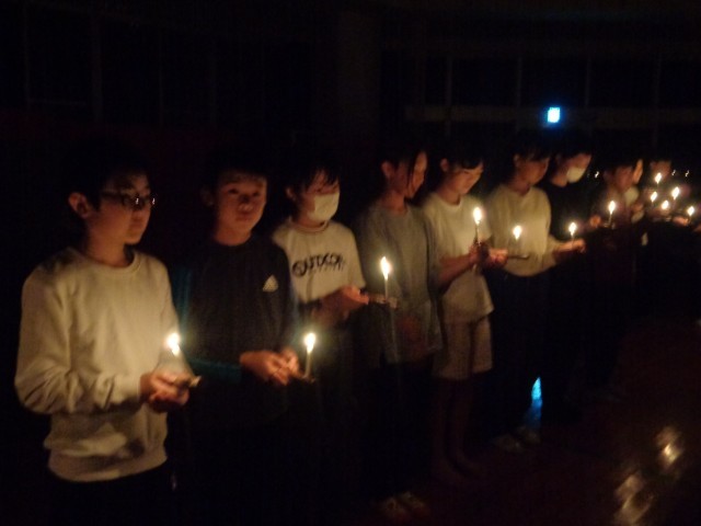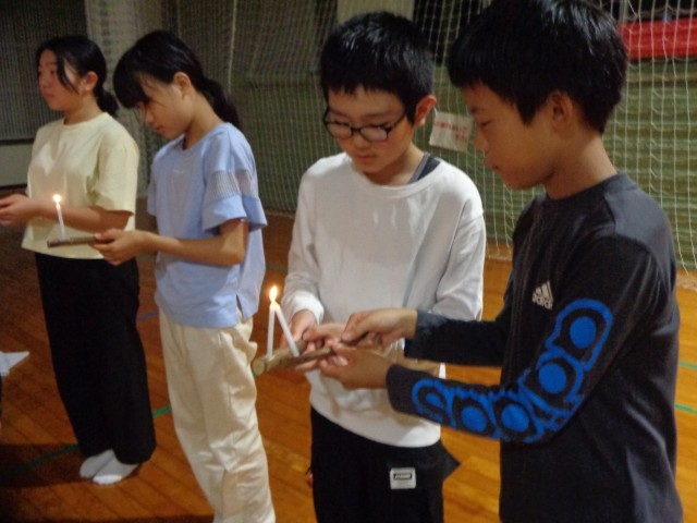 6月19日(木) 6年生 宿泊学習 キャンドルサービス2 公開日 2025/06/23 更新日 2025/06/22 6年生 火の守から全員に点火し、暗闇の中で心を落ち着け、校歌を歌いました。静かな雰囲気の中、今までの自分自身のことやこれからのことについて考えることができました。 +5