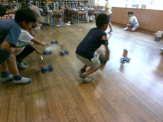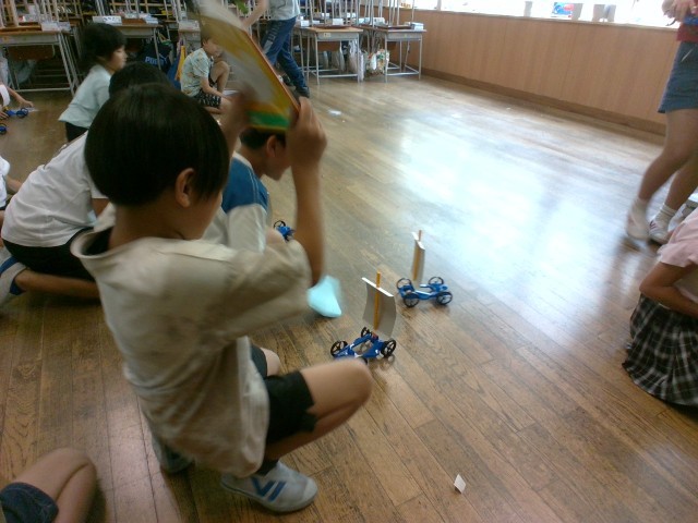 3年生 理科 風やゴムのはたらき 公開日 2025/07/07 更新日 2025/07/07 3年生 4時間目の理科は実験キットの車を走らせました。まずは自由に風を与えてみて車の進み具合を体験しました。