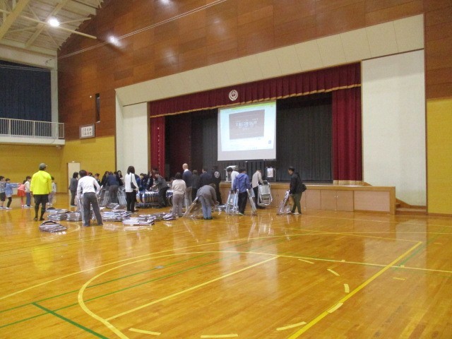 育成会の総会のあと、たくさんの保護者の方々が総会の片付けをしておられました。ありがとうございます。3時間目の子供たちの「交通安全VTR視聴」に間に合いそうです。