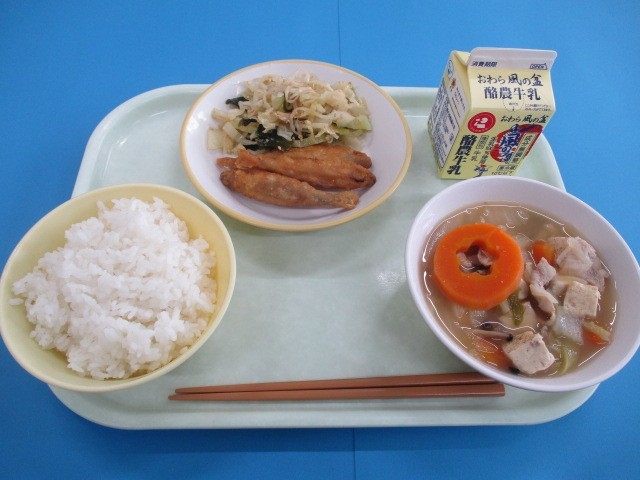 今日は6年生にとって、小学校生活最後の給食となりました。調理員の方々のご厚意により、6年生の食缶には、「桜の人参」がプレゼントされました。調理員の皆さん、ありがとうございます。
