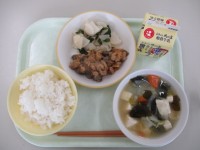今日の献立は、ごはん 卵とじ いわしの土佐煮 納豆和え 牛乳 でした。