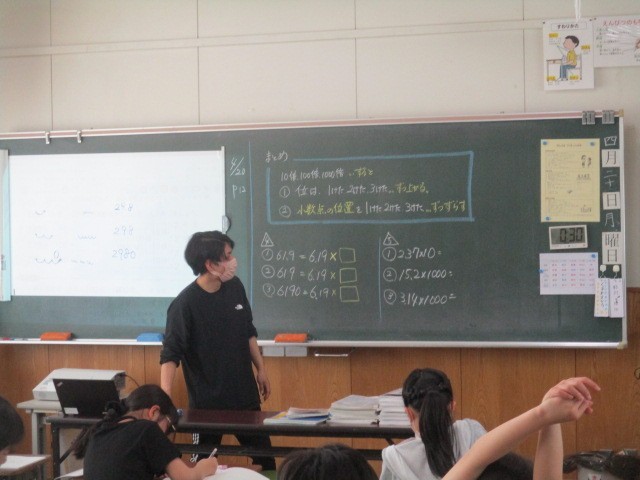 5年1組の5時間目は、算数科の学習でした。計算のきまりを使って考えていました。