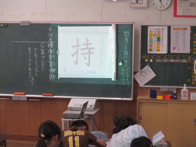 3年1組の5時間目は、国語科の学習でした。「持」という漢字の練習をしていました。