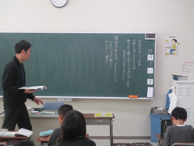 4年1組の1時間目は、国語科の学習でした。「白いぼうし」というお話の学習課題をノートにかいているところでした。