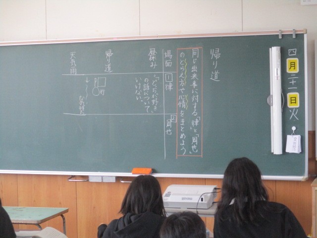 6年2組の1時間目は、国語科の学習でした。「帰り道」というお話に登場する人物の心情について考えていました。