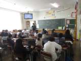 学年で体育館に集まり、通してやってみました。 みんなで言うせりふや動きを確認し、...