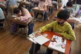 歌やダンス、飾りのリーダーで話合いをしながら、1、2年生の出し物がうまくいくよう...