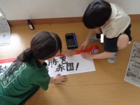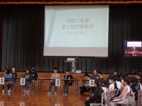 6年生から5年生へ、運動会で行う応援合戦に向けた伝達があり、エールや手拍子の仕方...