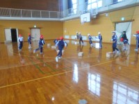 投げる運動を行いました。最後には、団対抗でダンボールを真ん中に置き、相手の陣地へ動かすゲームをしました。玉をダンボールに当てて動かすために、狙いを定めたり、強く投げたりしていました。