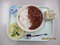 今日の給食では、3学期のデザート選挙の結果1位に選ばれたチョコクレープがでました。その他のメニューは、ご飯 厚揚げの錦とじ 鰆の西京焼き チンゲンサイソテー 牛乳 でした。