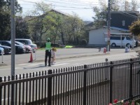 3年生は、5時間目に3クラス合同で体育科をしていました。50m走を計っていました。