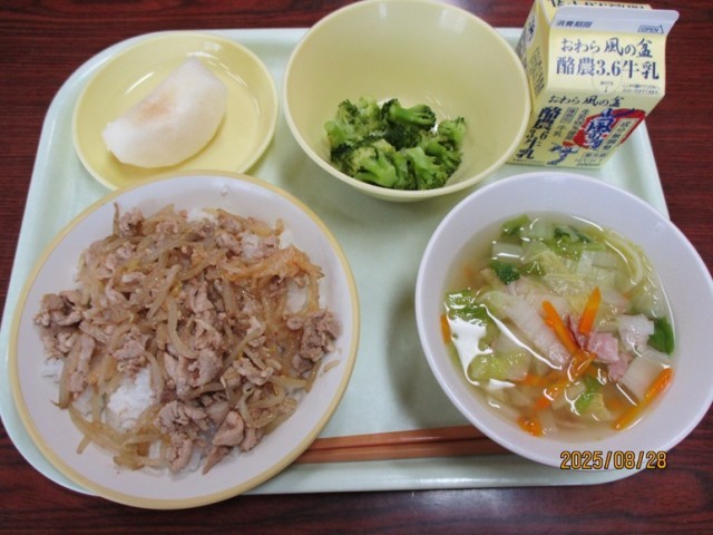 豚キムチ丼  牛乳  ゆでブロッコリー