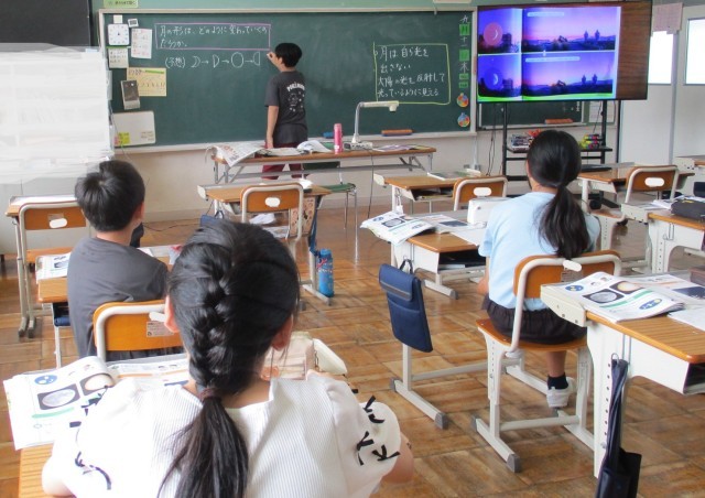6年生の理科では、月はどうして形が変わって見えるのか考え、話し合いました。