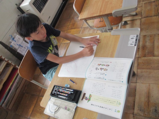 4年生の国語の学習の様子です。1枚目は新出漢字の書き順を学習しているところです。2枚目は、「いろいろな意味をもつ言葉」の学習です。かなで書くと同じでも、いろいろな意味を持つ言葉があることを勉強し、自分で言葉遊びの文をつくっているところです。