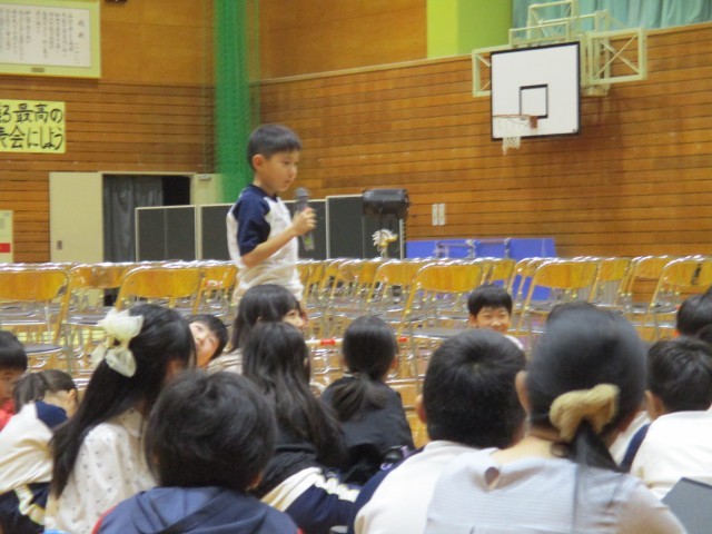 校内発表会の後に、若草グループで振り返りをしました。グループでの振り返りの後、「私も、(〇〇さんのように)セリフをはっきり言えるように(練習を)頑張りたいと思った」や「前(発表を見た時)よりも自信をもって(発表)できていた」等と、子供たちが思いを発表しました。仲間に刺激を受けながら、学習発表会まで、歩みを進める子供たちです。